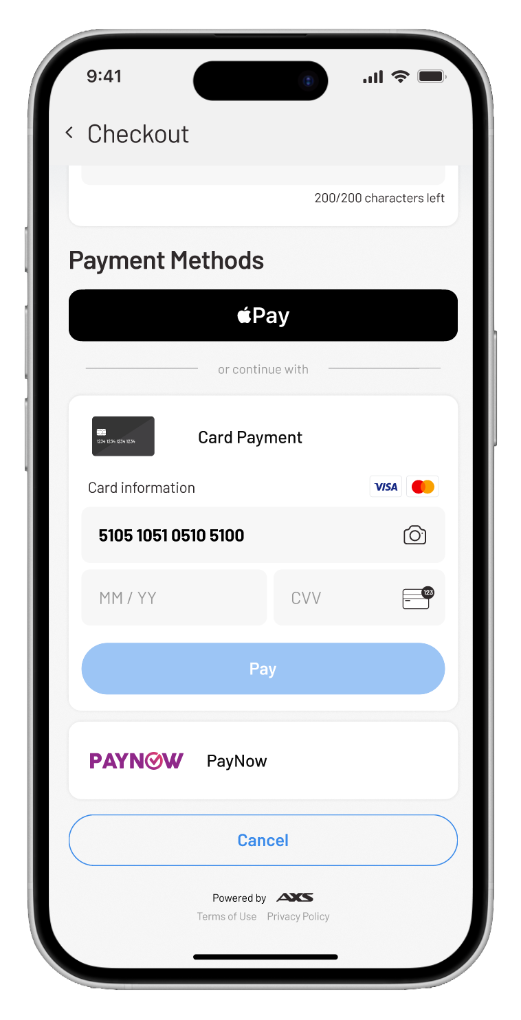AXS Checkout is the online payment checkout system used by AXS to allow customers to complete transactions on websites that integrate AXS as a payment method.