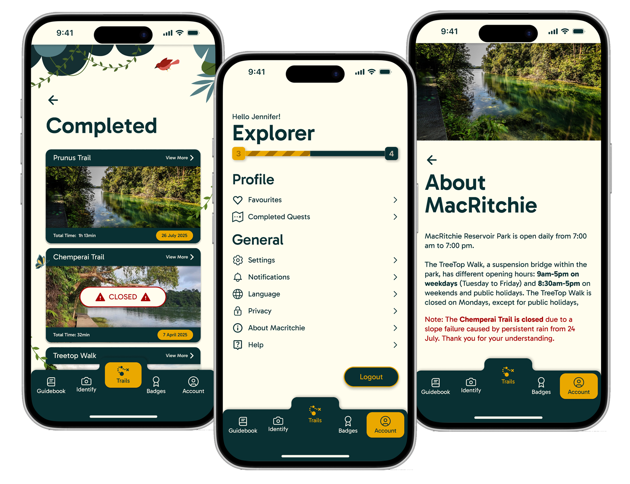 Evaluated existing MacRitchie platforms and conducted field research to uncover gaps, user behaviours and pain points.